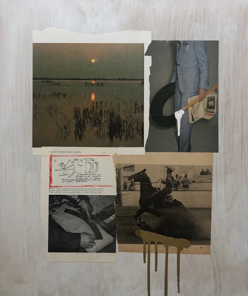On the Road is an exhibition of new work by Dallas-based artist, William Atkinson. The exhibition will debut new large-scale mixed media paintings combining formal and conceptual qualities from Abstract Expressionism, photo collage, and Western literature. Reappropriating found photography documenting a midcentury family’s road trip from Texas to Colorado, Atkinson honors and disrupts tenets American culture with bold mark-making and expressive gesture.